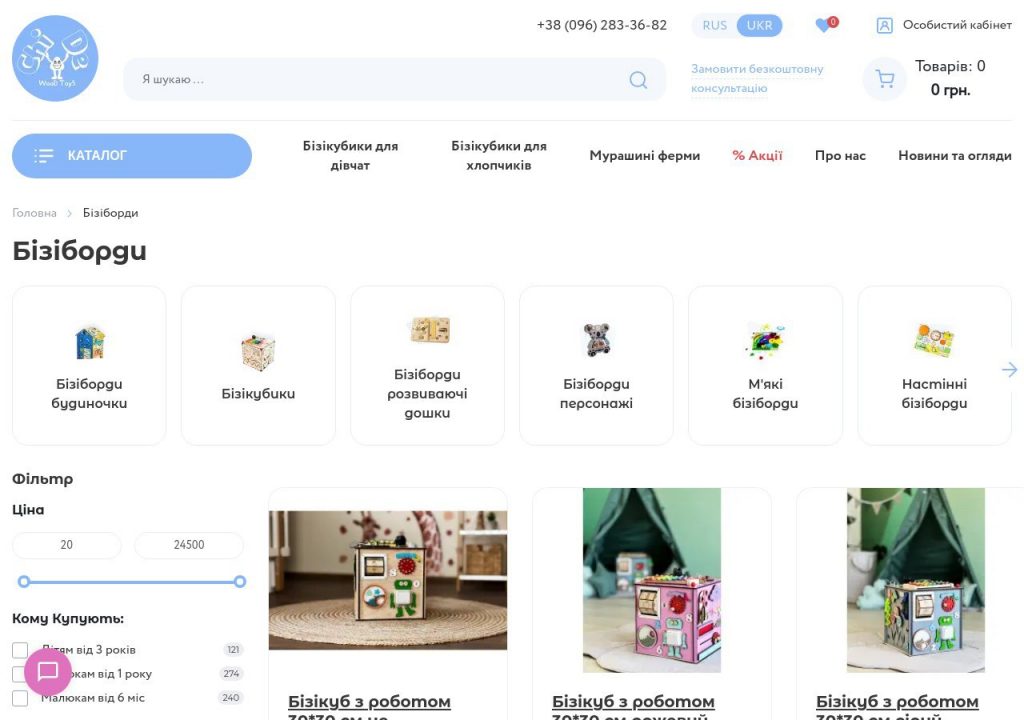 - Интерактивный бизиборд: Содержит в себе различные кнопки и дисплеи, реагирующие на действия ребенка, что способствует развитию координации движений и познавательных навыков.